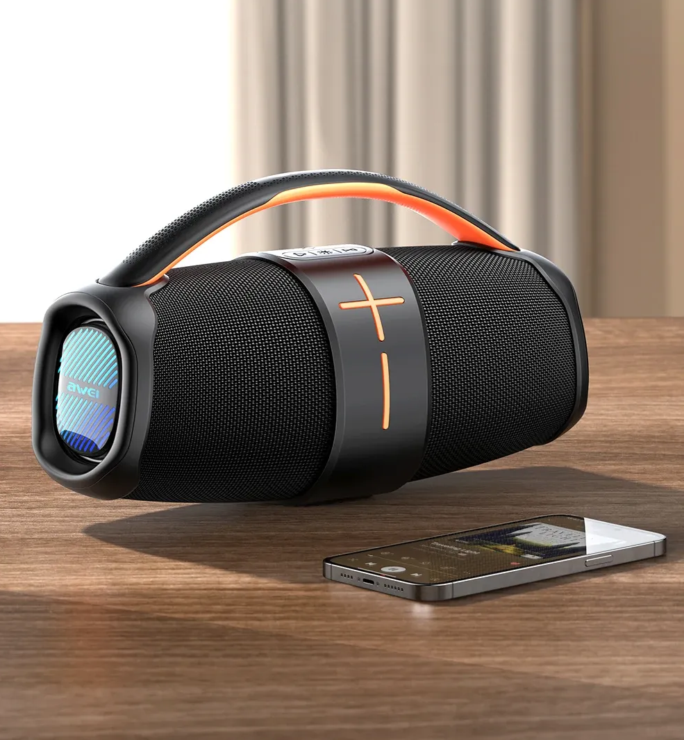 The Awei Y887 Portable Bluetooth Speaker is a strong and adaptable outdoor audio solution that offers immersive sound and current features. The Y887 Bluetooth Speaker supports Bluetooth 5.3 with EDR for fast, reliable connections and better audio streaming across a broad range of devices, including smartphones, TVs, laptops, and tablets. The speaker has two 4Ω 10W speakers that produce rich stereo sound. Its built-in amplifier can output up to 20W for high-volume, high-impact audio. Powered by a 3,600mAh built-in lithium battery, it provides 4 to 7 hours of gameplay depending on use and recharges completely in 4 hours using its Type-C charging port. The Awei Y887 also supports TWS (True Wireless Stereo), which allows you to connect two speakers for a more immersive, dynamic audio experience. The Y887has progressive lighting effects that enhance the ambiance, making it ideal for parties or outdoor events. With a sturdy construction weighing 1185 grams, the speaker is designed for portability and durability, and its IPX5 waterproof classification protects against splashes and light rain, making it ideal for outdoor activities. The Y887 speaker has three ports Type-C, Type-A, and AUX for versatile connectivity and controls for play, stop, and volume adjustment. The Awei Y887, which combines high-resolution sound with durable durability, is designed to improve your audio experience indoors and outdoors.