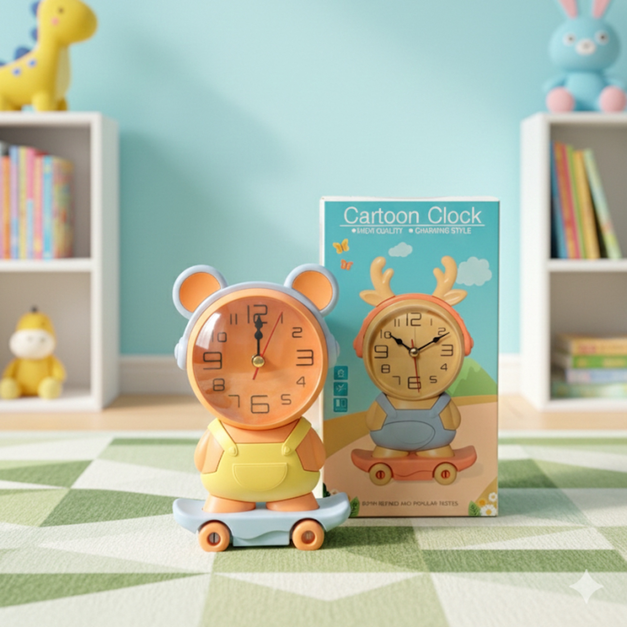এই ঘড়িটি শিশুদের রুম, স্টাডি টেবিল অথবা বেডসাইডে রাখার জন্য একেবারে পারফেক্ট। আকর্ষণীয় কার্টুন ডিজাইন, উজ্জ্বল রঙ এবং স্কেটবোর্ড স্টাইল বেস—সব মিলিয়ে দারুণ কিউট একটি ডেকোর + ইউজফুল ক্লক।